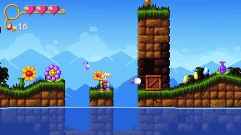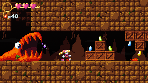 In this game you control our limbless hero Connie and her spirit friend Plum on their quest to defeat Lucilate, an evil overlord who has taken over the island of Cuisinia. Explore a whimsical word, free every imprisoned essence fairy, unlock new powers and beat a bunch of terrifying foes!